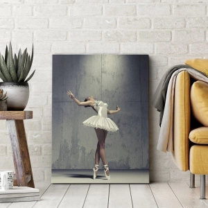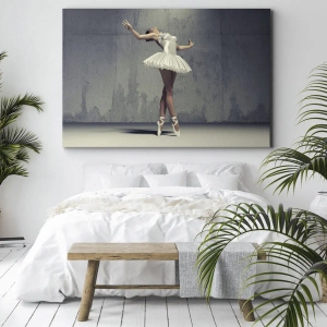 - Cette impression sur toile représente une danseuse de ballet en robe blanche sur un mur austère. Parfaite pour les intérieurs qui privilégient l'art et le minimalisme.