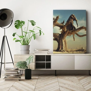 Impression sur toile - Image sur toile - Un éléphant assis sur un arbre dans un paysage surréaliste - 100x70cm - Nouveau point de vue - Décoration murale moderne pour le salon et la chambre ARTTOR