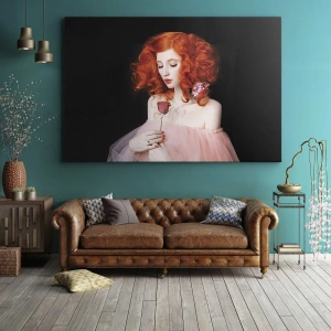 Impression sur toile - Image sur toile - Une femme aux cheveux roux tenant une rose - 120x80cm - De style baroque - Décoration murale moderne pour le salon et la chambre ARTTOR