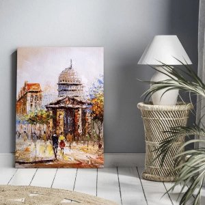 Impression sur toile - Image sur toile - Scène de ville impressionniste avec un bâtiment historique - 100x70cm - Promenade à Paris - Décoration murale moderne pour le salon et la chambre ARTTOR
