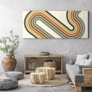 Impression sur toile - Image sur toile - Motif géométrique dans les tons de vert, orange et beige sur fond clair - 140x50cm - En zig zag vers le but - Décoration murale moderne pour le salon et la chambre ARTTOR