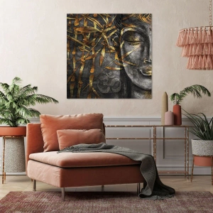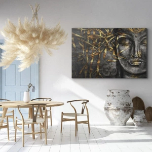 • Ce tableau représente une image du Bouddha entourée de bambous dorés sur un fond sombre. Il s'intègre parfaitement à l'atmosphère zen et spirituelle, apportant harmonie et paix aux intérieurs.