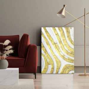 - Cette toile imprimée de 70 x 50 cm présente des lignes abstraites dorées et blanches dans une texture 3D. Un élément décoratif saisissant qui rehaussera la modernité et le style de tout intérieur.