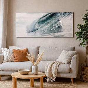 Impression sur toile - Image sur toile - Une vague de mer capturée dans un moment dynamique contre le ciel - 120x50cm - Pic d'eau - Décoration murale moderne pour le salon et la chambre ARTTOR