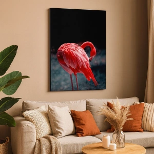 Impression sur toile - Image sur toile - Un flamant rose sur fond vert foncé - 120x80cm - Poème cramoisi de la nature - Décoration murale moderne pour le salon et la chambre ARTTOR