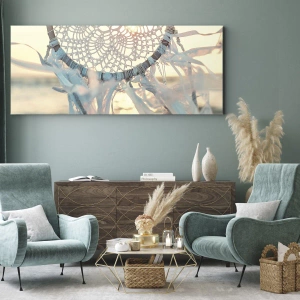 Impression sur toile - Image sur toile - Un attrape-rêves délicat sur fond de soleil couchant - 160x50cm - Totem en dentelle - Décoration murale moderne pour le salon et la chambre ARTTOR