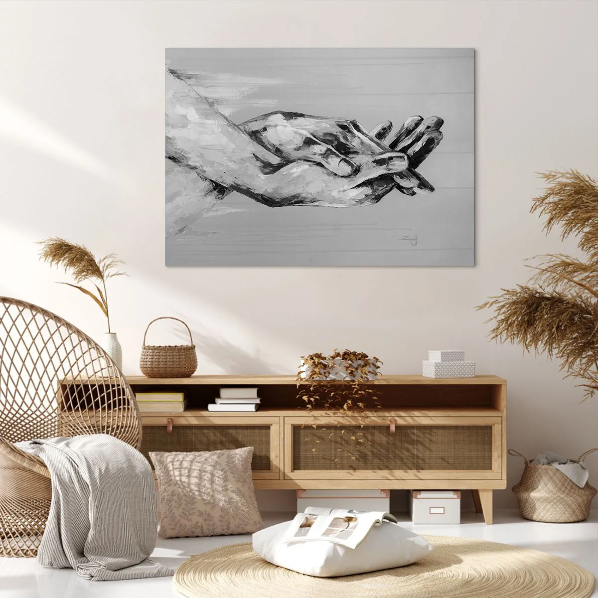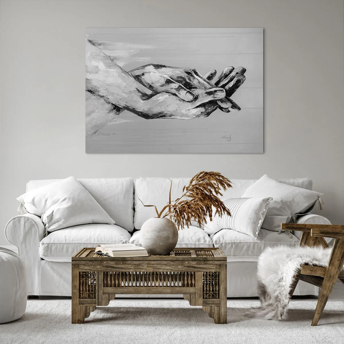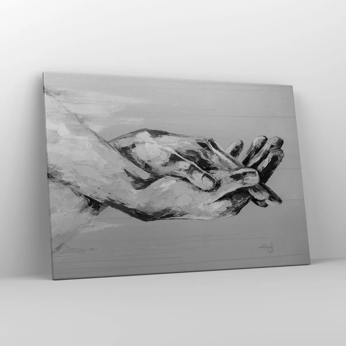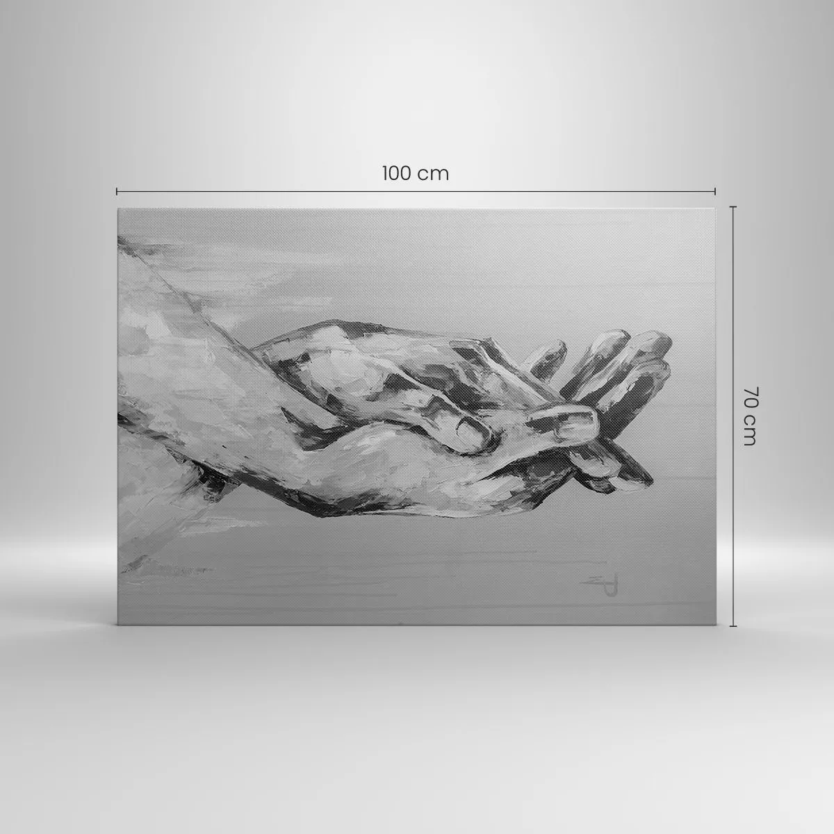 Impression sur toile - Image sur toile - Une composition en noir et blanc de deux mains jointes sur un fond clair. - 100x70cm - Début... - Décoration murale moderne pour le salon et la chambre ARTTOR