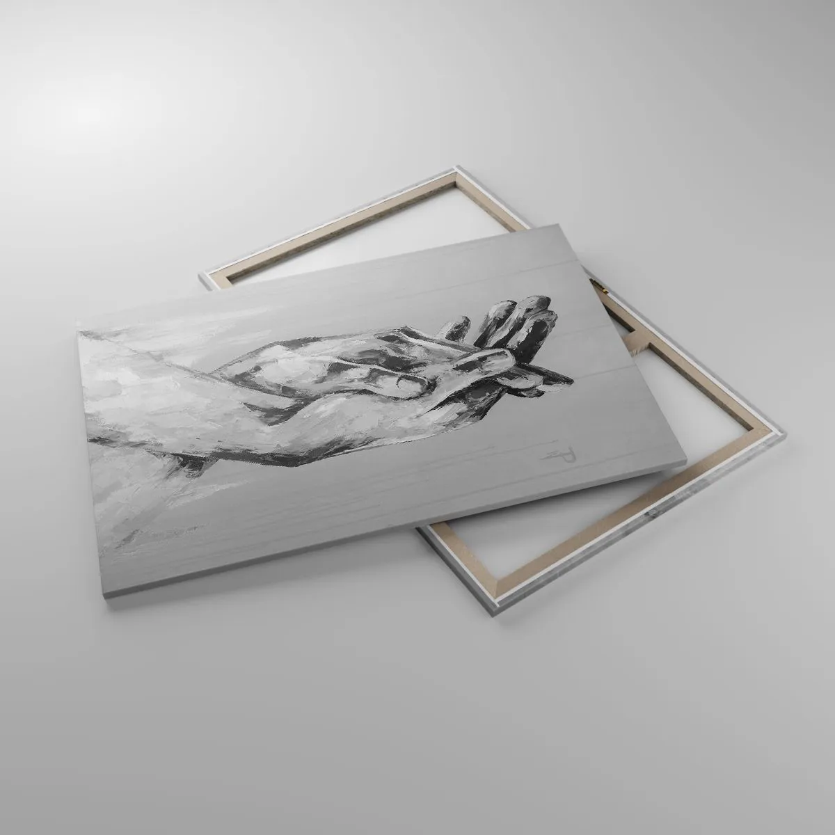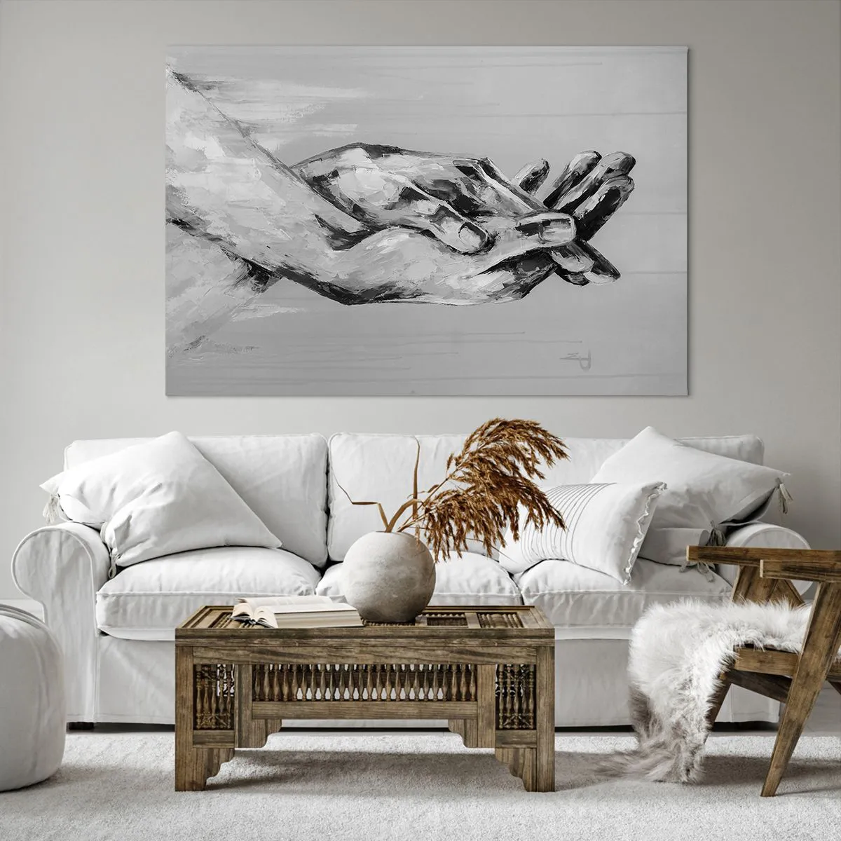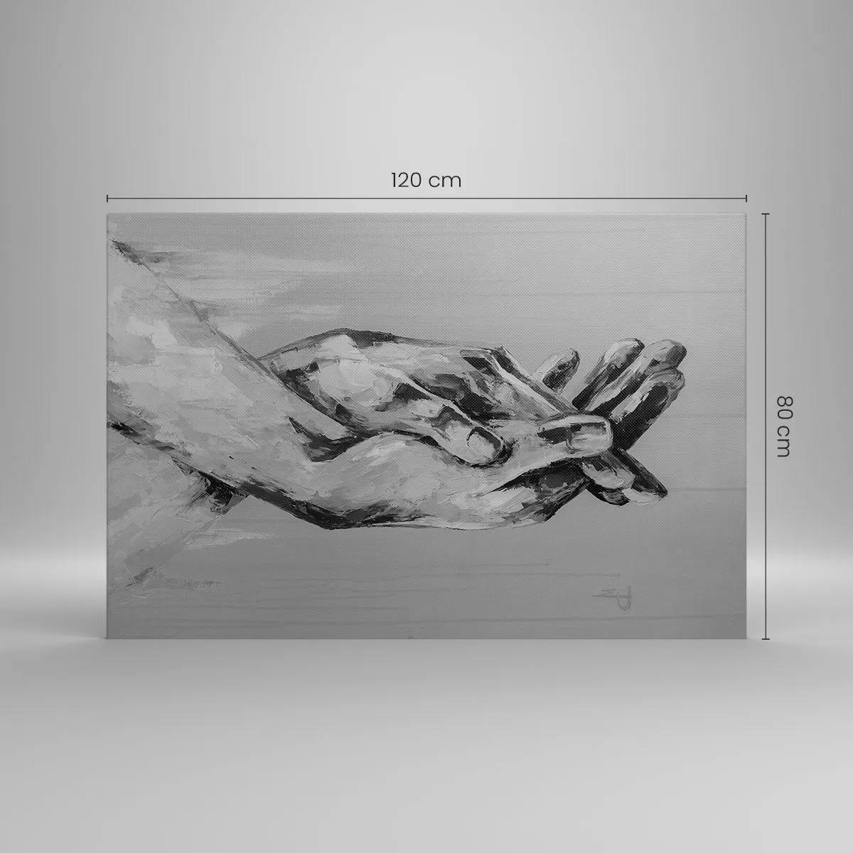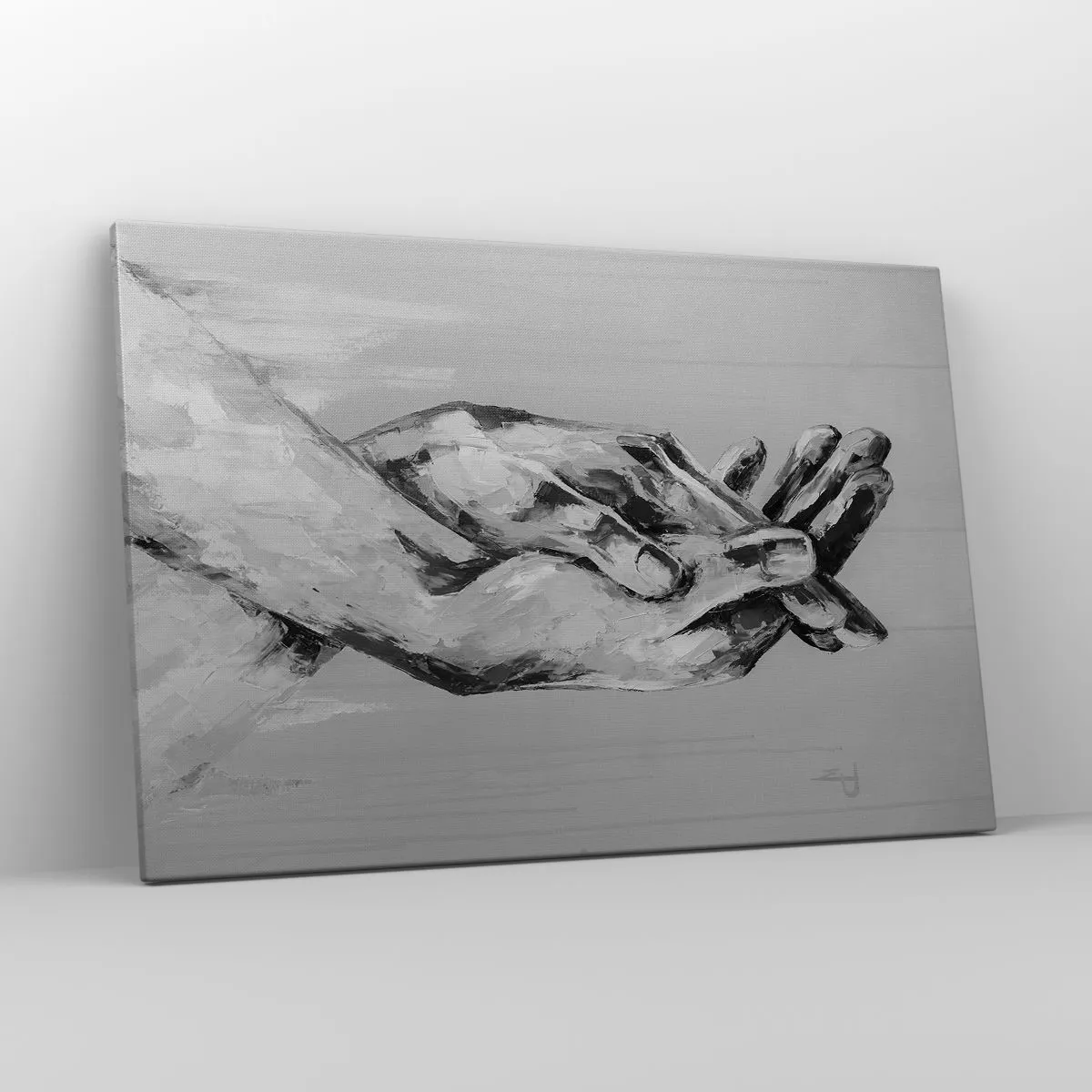 Impression sur toile - Image sur toile - Une composition en noir et blanc de deux mains jointes sur un fond clair. - 120x80cm - Début... - Décoration murale moderne pour le salon et la chambre ARTTOR