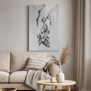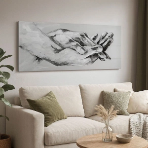 Impression sur toile - Image sur toile - Une composition en noir et blanc de deux mains jointes sur un fond clair. - 140x50cm - Début... - Décoration murale moderne pour le salon et la chambre ARTTOR
