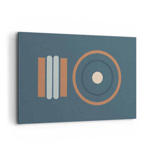 Impression sur toile - Image sur toile - Une composition géométrique avec des cercles et des rectangles aux couleurs sobres. - 120x80cm - Essence des choses - Décoration murale moderne pour le salon et la chambre ARTTOR