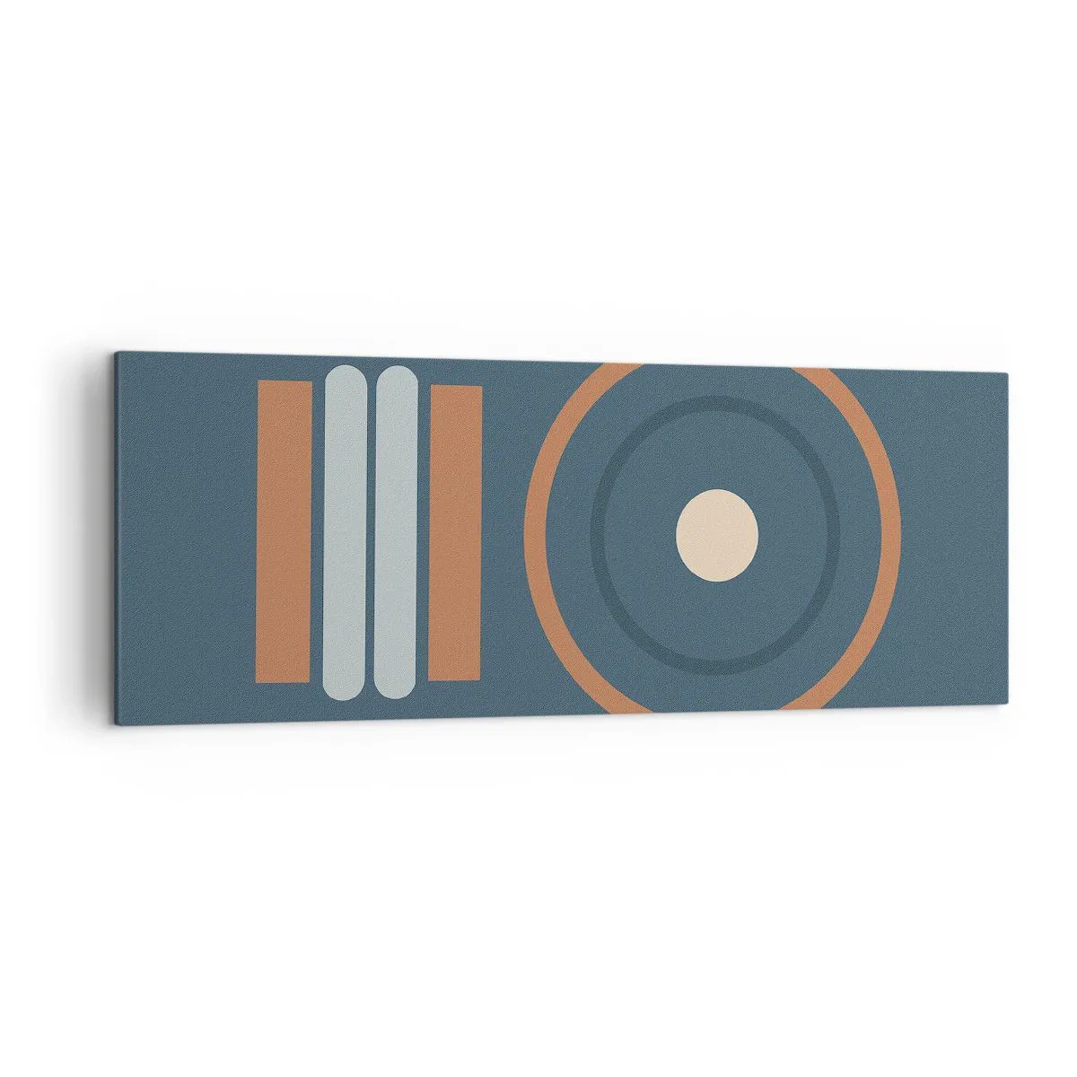 Impression sur toile - Image sur toile - Une composition géométrique avec des cercles et des rectangles aux couleurs sobres. - 140x50cm - Essence des choses - Décoration murale moderne pour le salon et la chambre ARTTOR