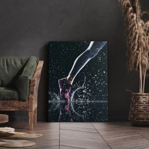 Les dimensions de l'image 70x50 cm et la technologie d'impression sur toile garantissent une qualité de fabrication optimale et une reproduction précise des détails. Le contraste entre le mouvement, l'eau et le fond sombre confère à la composition un caractère unique, tandis que les détails des gouttes d'eau et des chaussures de sport attirent le regard. Ce tableau sera parfait pour une salle de sport, un bureau ou un salon, où il insufflera une atmosphère de motivation et de détermination.