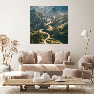 Impression sur toile - Image sur toile - Un paysage de montagne avec une route sinueuse parmi des collines verdoyantes - 120x80cm - Directement du coeur des montagnes - Décoration murale moderne pour le salon et la chambre ARTTOR