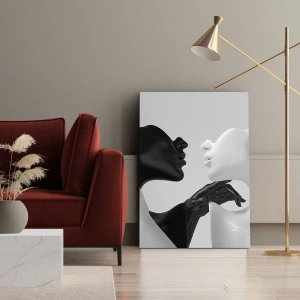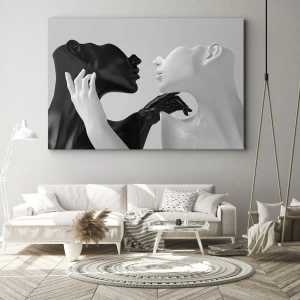 Impression sur toile - Image sur toile - Silhouettes noires et blanches en gros plan dynamique - 120x80cm - Attraction - désir - Décoration murale moderne pour le salon et la chambre ARTTOR