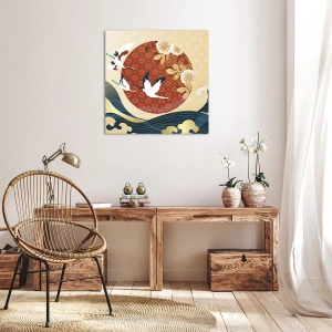 Impression sur toile - Image sur toile - Composition japonaise avec des grues et des vagues - 100x70cm - Conte japonnais - Décoration murale moderne pour le salon et la chambre ARTTOR