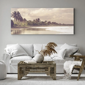 - Une plage bordée de palmiers, baignée par les douces vagues matinales. Ce tableau apporte paix et harmonie à l'intérieur.