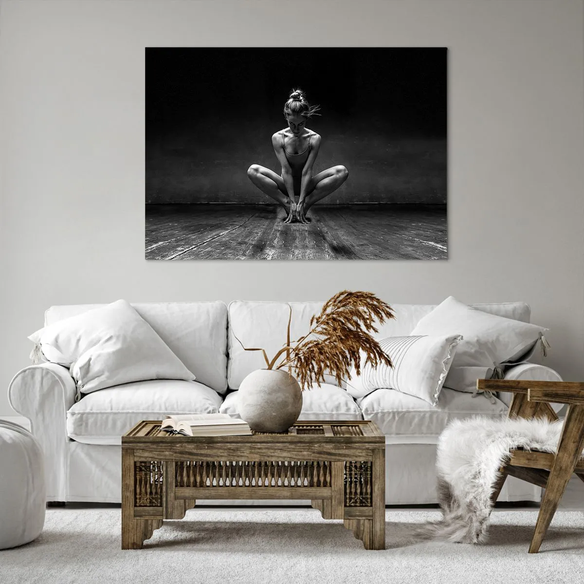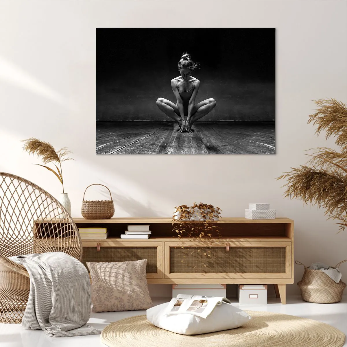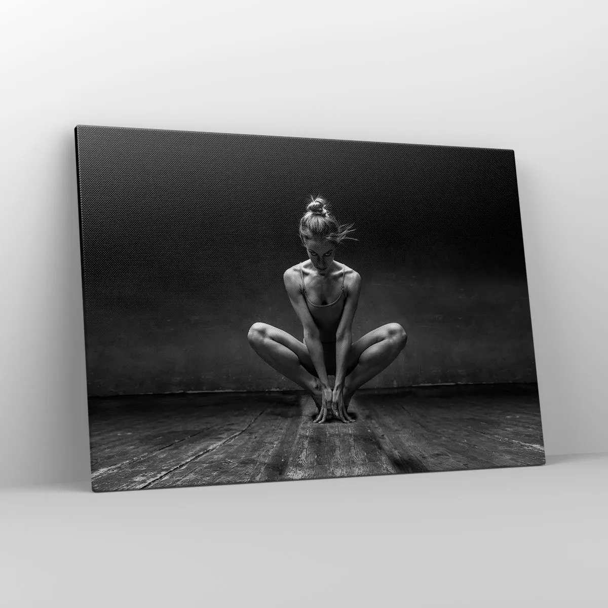 Impression sur toile - Image sur toile - Portrait en noir et blanc d'une danseuse en pleine concentration. - 100x70cm - Concentration de l'énergie de la danse - Décoration murale moderne pour le salon et la chambre ARTTOR