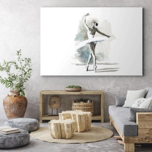 Impression sur toile - Image sur toile - Une danseuse de ballet dans une pose de ballet sur un fond de tons aquarelle délicats. - 100x70cm - Enchantement du cygne - Décoration murale moderne pour le salon et la chambre ARTTOR