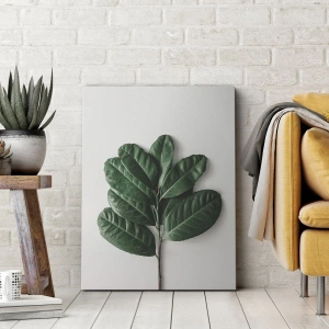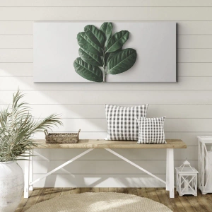 Impression sur toile - Image sur toile - Un brin de feuilles vertes sur un fond clair - 160x50cm - Dessin de la nature elle-même - Décoration murale moderne pour le salon et la chambre ARTTOR
