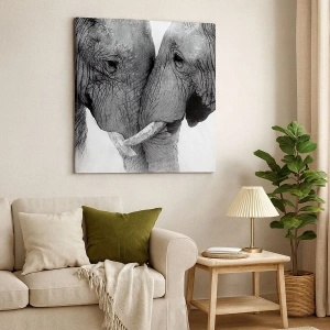 - Deux éléphants dans un geste tendre, présentés dans des tons monochromes. Un tableau unique qui apporte harmonie et élégance à tout intérieur.