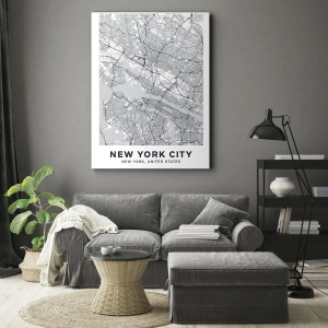 Le fond gris rehausse la subtilité du plan, permettant de se concentrer sur les détails et les proportions urbaines. Cette œuvre invite à la réflexion sur la structure de la ville et son agencement, tout en séduisant par sa simplicité d'exécution. Il s'intègre parfaitement aux intérieurs loft, industriels ou minimalistes, où fonctionnalité et design vont de pair.