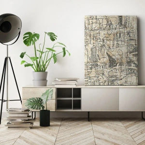 Impression sur toile - Image sur toile - Motifs abstraits et lignes sur fond beige - 100x70cm - Il attend d'être décodé - Décoration murale moderne pour le salon et la chambre ARTTOR