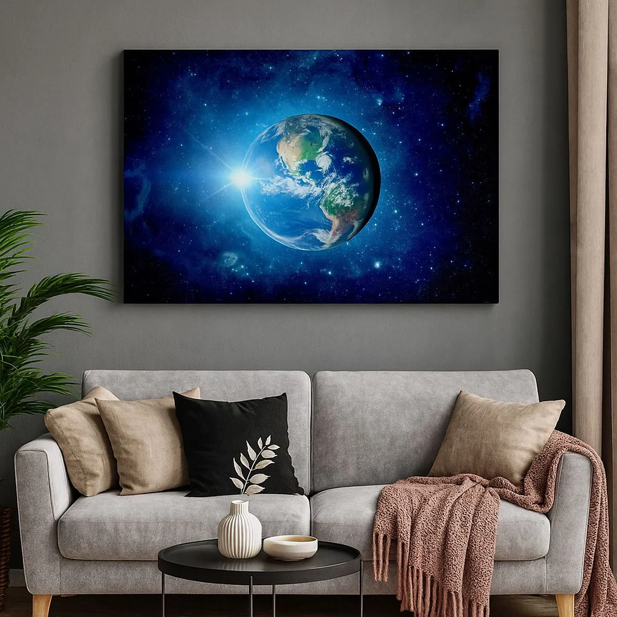 Impression sur toile - Image sur toile - La Terre dans l'espace entourée d'étoiles et de lumière - 100x70cm - Nous sommes au paradis - Décoration murale moderne pour le salon et la chambre ARTTOR