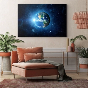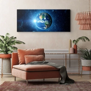 Impression sur toile - Image sur toile - La Terre dans l'espace entourée d'étoiles et de lumière - 160x50cm - Nous sommes au paradis - Décoration murale moderne pour le salon et la chambre ARTTOR