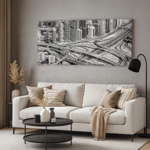 Impression sur toile - Image sur toile - Une vue plongeante sur Dubaï - 140x50cm - Dubaï - la ville impossible - Décoration murale moderne pour le salon et la chambre ARTTOR