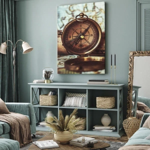 La composition du tableau impressionne par son souci du détail : chaque élément, de la texture métallique de la boussole aux lignes subtiles de la carte, a été réalisé avec la plus grande précision. L'atmosphère vintage est soulignée par des nuances chaudes de brun et d'or, qui apportent élégance et sophistication à l'ensemble.