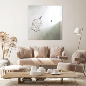 Impression sur toile - Image sur toile - Un oiseau libéré d'une cage sur fond de ciel lumineux - 160x50cm - Dans son élément - Décoration murale moderne pour le salon et la chambre ARTTOR