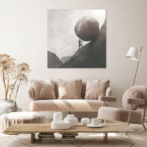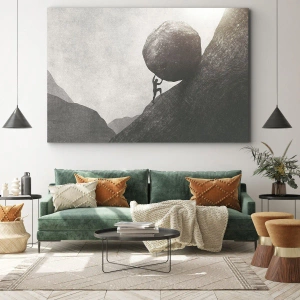 Impression sur toile - Image sur toile - Un homme escaladant un énorme rocher sur une colline - 160x50cm - Je crois contre tout espoir - Décoration murale moderne pour le salon et la chambre ARTTOR