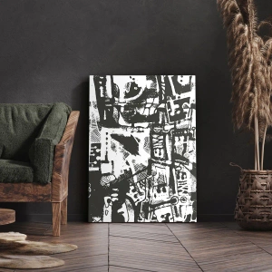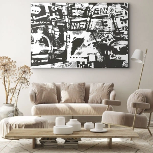 Impression sur toile - Image sur toile - Motif rétro monochrome abstrait - 160x50cm - Ordre ou chaos? - Décoration murale moderne pour le salon et la chambre ARTTOR