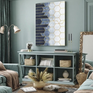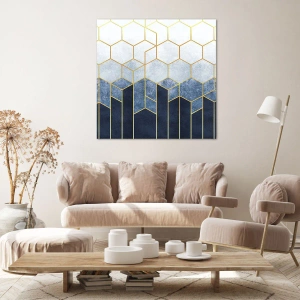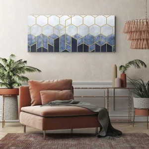 Impression sur toile - Image sur toile - Motif géométrique dans les tons or et bleu marine - 160x50cm - Composition en rythme syncopé - Décoration murale moderne pour le salon et la chambre ARTTOR
