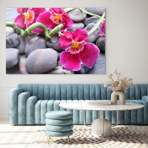 Décoration murale - Froid et Chaleur - Orchidées roses avec bambou sur pierres