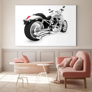 Impression sur verre - Image sur verre - Une moto chromée de style moderne sur fond blanc - 50x70cm - Rêve de collectionneur - Décoration murale moderne pour le salon et la chambre ARTTOR