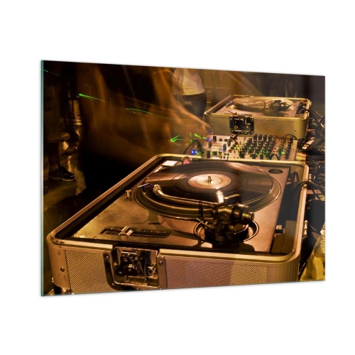 Impression sur verre - Image sur verre - Une platine sur fond de fête avec des effets de lumière dynamiques - 100x70cm - Sentez-vous cette force? - Décoration murale moderne pour le salon et la chambre ARTTOR