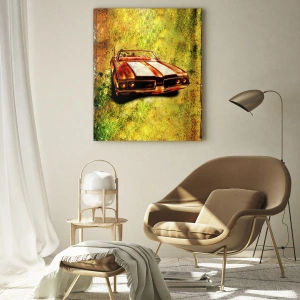 Impression sur verre - Image sur verre - Une décapotable sportive vintage sur fond artistique - 100x70cm - Puissance enchantée dans les formes - Décoration murale moderne pour le salon et la chambre ARTTOR