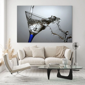 Impression sur verre - Image sur verre - Éclaboussures d'eau dans un verre à martini - 120x80cm - Eau cristalline dans un verre cristal - Décoration murale moderne pour le salon et la chambre ARTTOR
