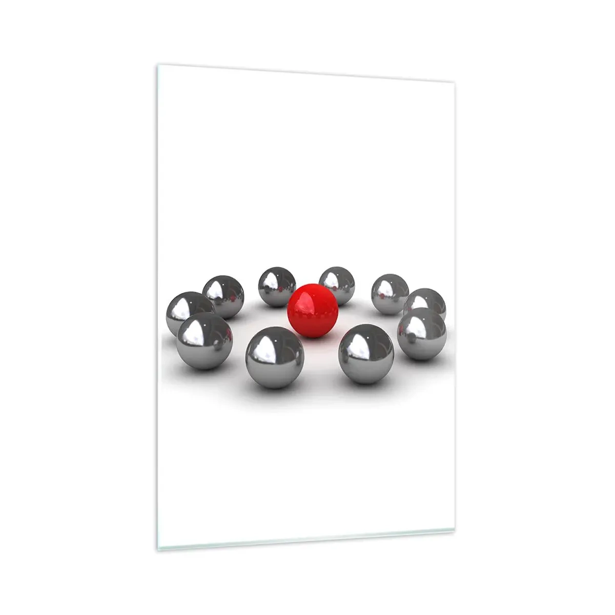 Impression sur verre - Image sur verre - Une boule rouge entourée de boules argentées sur fond blanc - 80x120cm - Un cercle en argent et rouge - Décoration murale moderne pour le salon et la chambre ARTTOR