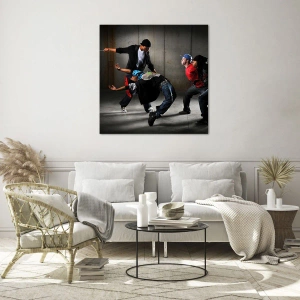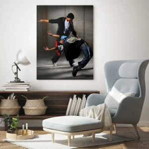 Impression sur verre - Image sur verre - Un groupe de danseurs hip-hop dans une chorégraphie dynamique - 80x120cm - Danser avec le vent de la rue - Décoration murale moderne pour le salon et la chambre ARTTOR