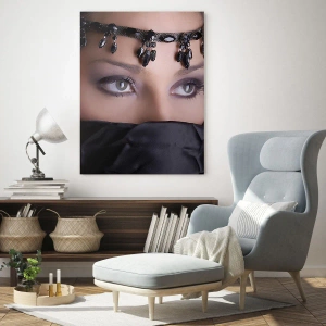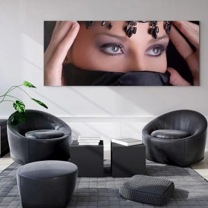 Impression sur verre - Image sur verre - Portrait d'une femme avec des bijoux décoratifs sur fond noir - 80x120cm - Tentation de mystère oriental - Décoration murale moderne pour le salon et la chambre ARTTOR