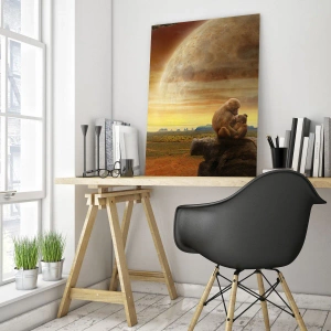 Impression sur verre - Image sur verre - Des singes assis sur un rocher avec une énorme lune en arrière-plan - 50x70cm - L'amour est le même partout - Décoration murale moderne pour le salon et la chambre ARTTOR