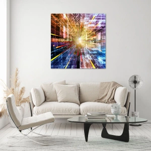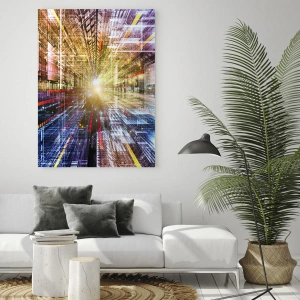 Impression sur verre - Image sur verre - Vision abstraite avec des lignes colorées et de la lumière - 120x80cm - Couloir lumineux - Décoration murale moderne pour le salon et la chambre ARTTOR