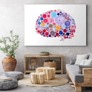 - Ce tableau représente un cerveau abstrait composé de motifs floraux colorés. Idéal pour les intérieurs inspirant créativité et réflexion.