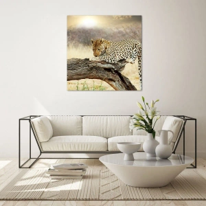 Impression sur verre - Image sur verre - Un léopard se reposant sur un tronc d'arbre dans la savane - 160x50cm - Je suis ma propre route - Décoration murale moderne pour le salon et la chambre ARTTOR