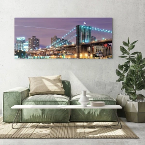 Impression sur verre - Image sur verre - Le pont de Brooklyn la nuit avec les tours et la ville illuminées - 120x80cm - Depuis de nombreuses années le pont de Brooklyn - Décoration murale moderne pour le salon et la chambre ARTTOR