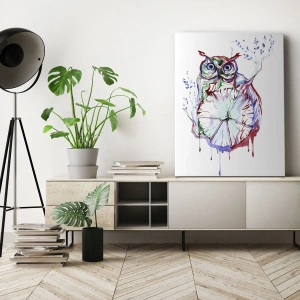 Impression sur toile - Image sur toile - Chouette aquarelle colorée dans un style artistique - 100x70cm - Sage par nature - Décoration murale moderne pour le salon et la chambre ARTTOR