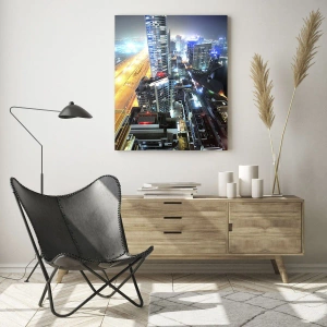 Impression sur verre - Image sur verre - Panorama de la ville nocturne avec des gratte-ciel illuminés - 70x100cm - Un miracle dans le désert - Décoration murale moderne pour le salon et la chambre ARTTOR