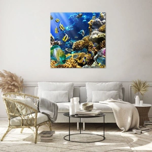 Impression sur verre - Image sur verre - Un récif corallien coloré avec des poissons tropicaux dans les profondeurs de l'océan. - 80x120cm - Beaucoup de circulation sur la route des vacances - Décoration murale moderne pour le salon et la chambre ARTTOR